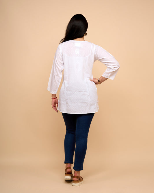 Blusa Georgette de Manga 3/4 con Bordado Chikankari
