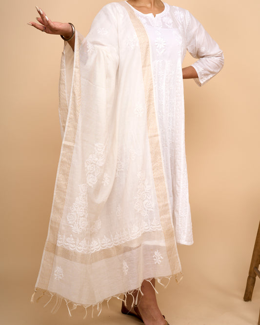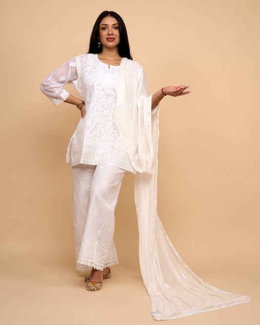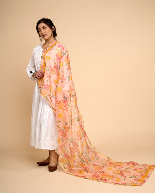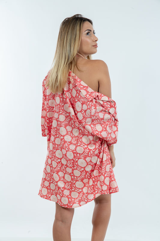 Combo Bralette y Camisa Oversized - Estilo Floral de la India en Melocotón y Blanco
