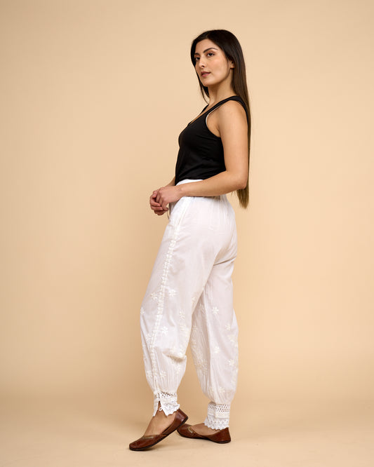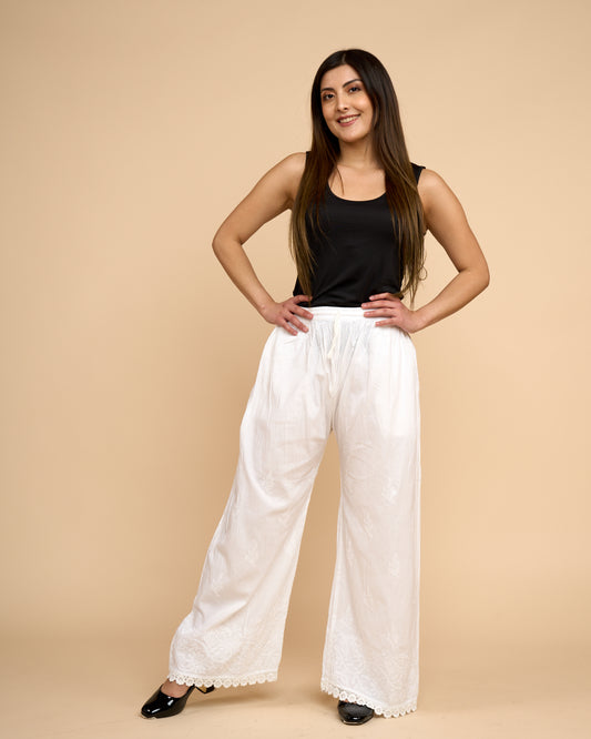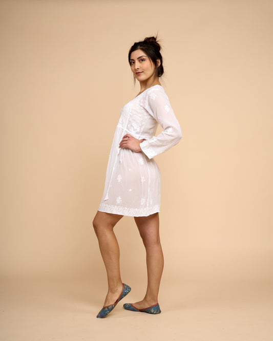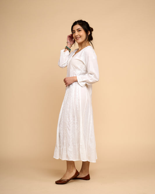 Vestido Blanco de Manga Larga con Bordado Chikankari Blanco