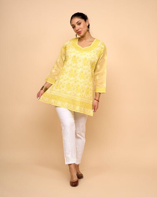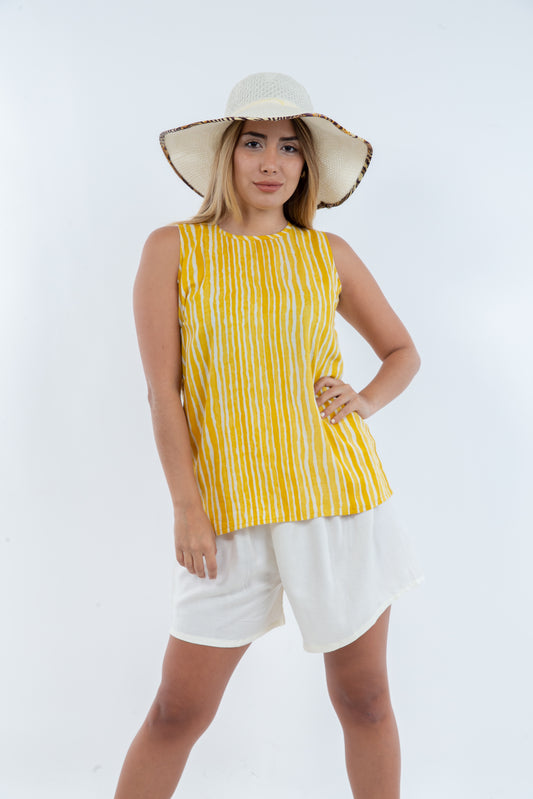 Top sin Mangas Amarillo con Rayas Blancas - Estilo Veraniego en Algodón y Muselina